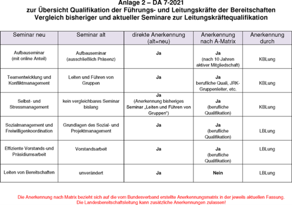 Fragen und Anerkennungsanträge von Ausbildungen werden von der Kreisbereitschaftsleitung beantwortet.